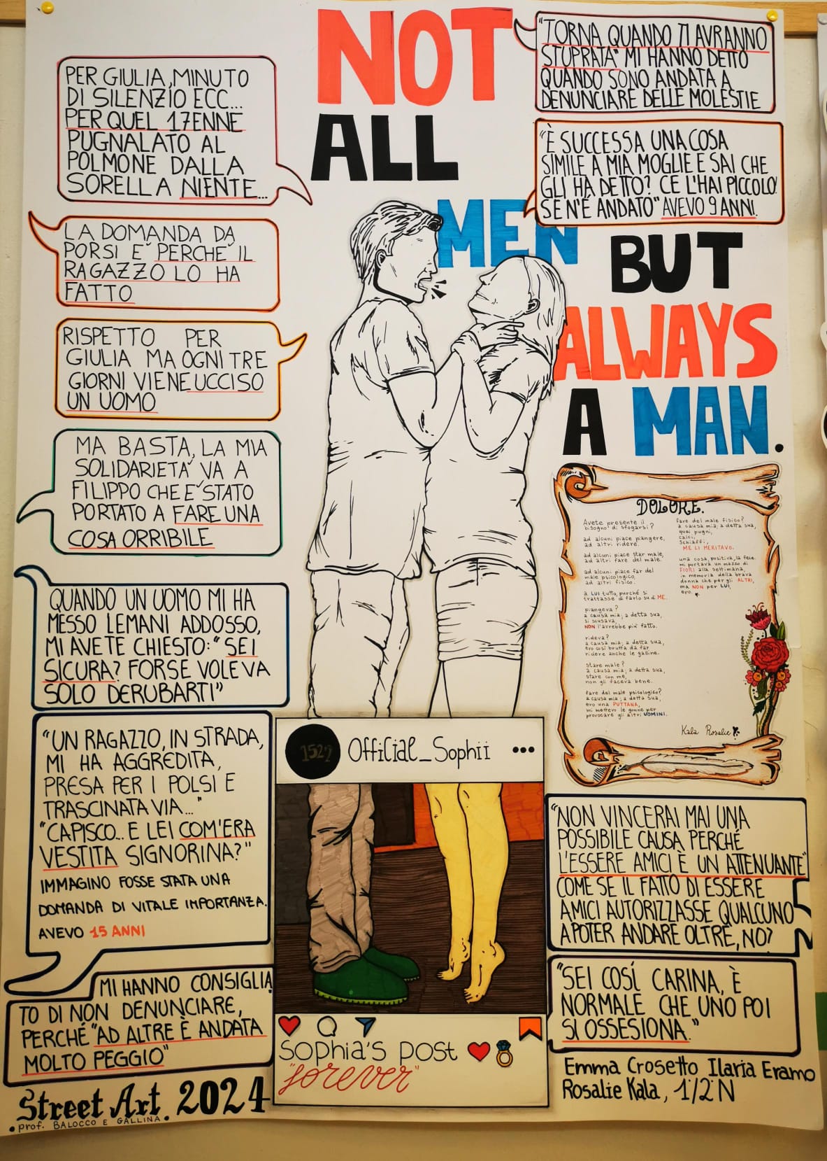 Il laboratorio ha permesso di esplorare e approfondire tecniche grafiche e artistiche, con particolare attenzione alla progettazione e realizzazione di murales, intesi non solo come espressione estetica, ma anche come veicolo di messaggi e valori condivisi. L’attività ha stimolato la riflessione visiva e simbolica, favorendo l’integrazione tra contenuti tecnici e sensibilità artistica.